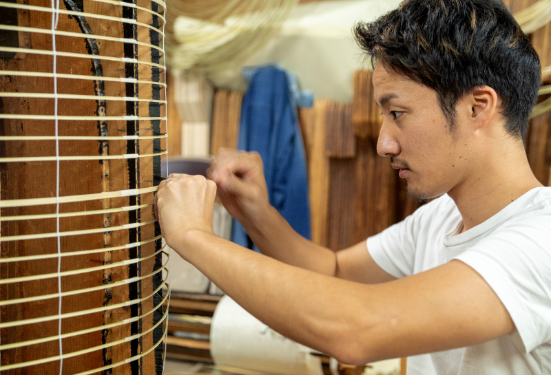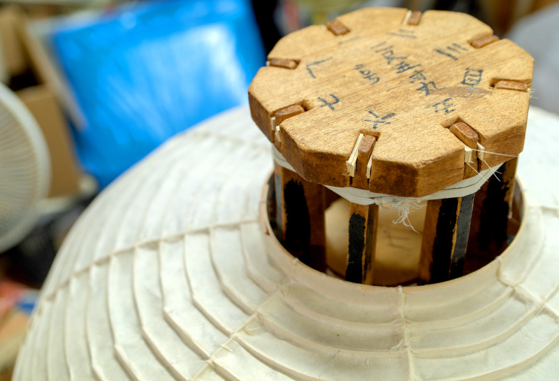 「地張り式」は、一般的な提灯の製法である「巻骨式」に比べ、大変な時間と手間ひまがかかるため、近年、提灯屋や職人の数が減少し、その製法は、京都でも数社が受け継ぐのみとなってしまいました。