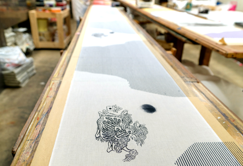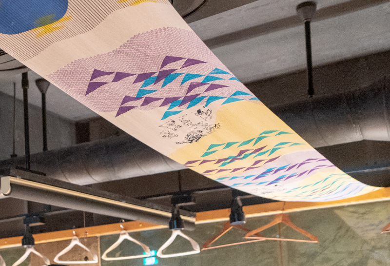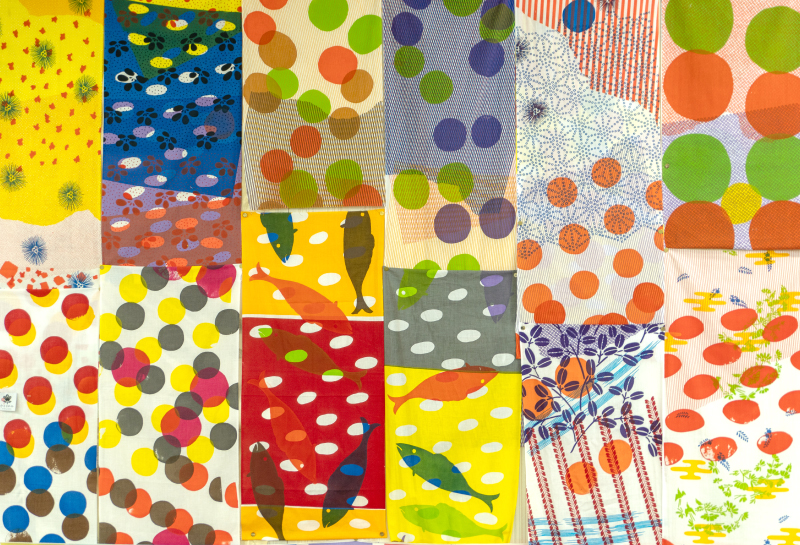 京都市立芸術大学の方々が、店内をインスタレーションされるとお聞きしたので、「手ぬぐい」としての役割よりも、商品を「テキスタイル」として捉えデザインしました。