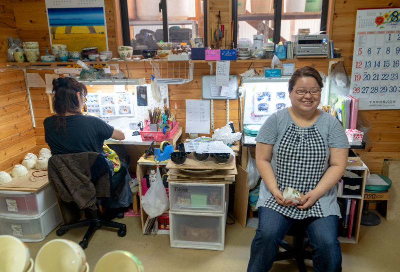 口広で内側の底まで洗いやすく、体に優しい耐酸・無鉛性の絵具を使用致しました。