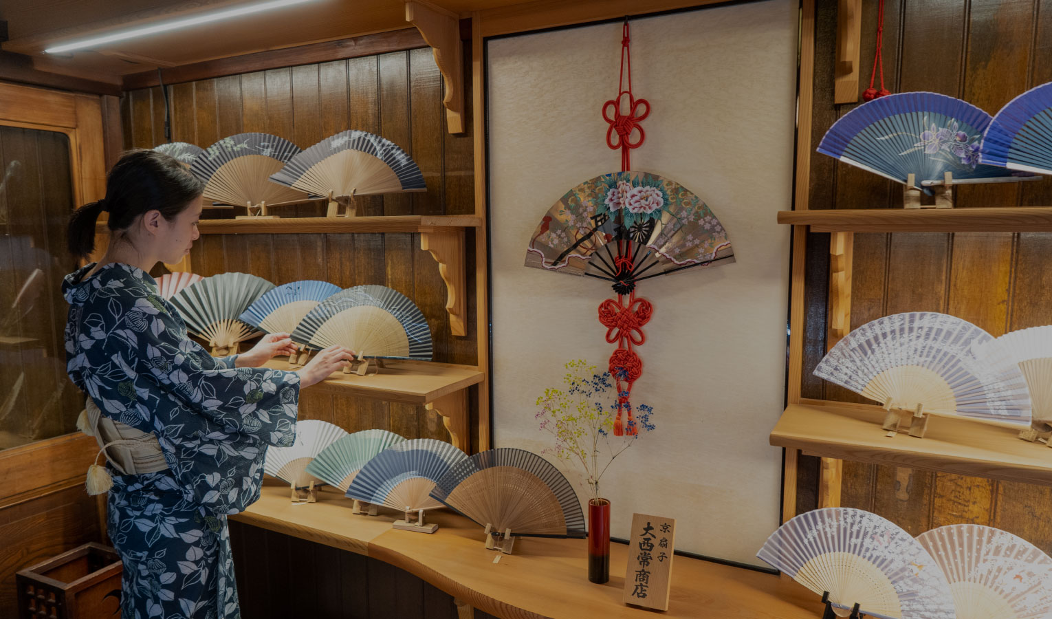 京扇子は琳派の図案で、扇の世界が外に広がるような古典的な図案が多い中、皆さんに飲食店の中でもしっかり見て頂けるよう、色合いに注視して製作していました。