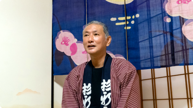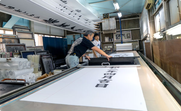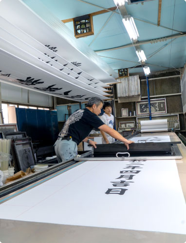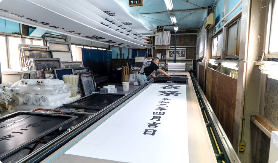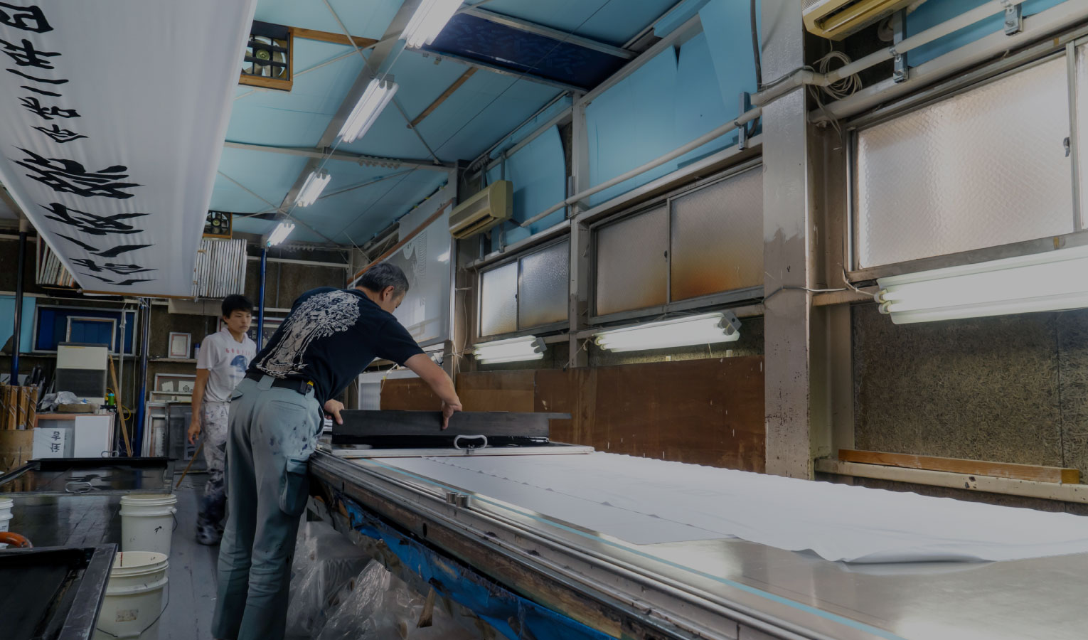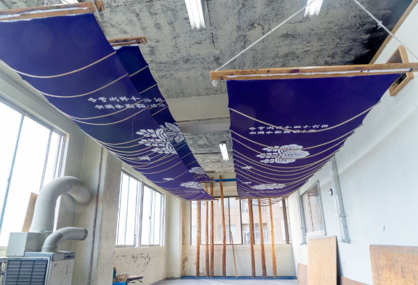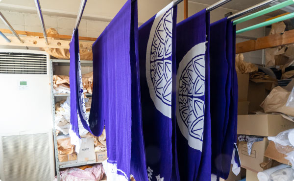 表玄関を飾るのれんは店舗のイメージになります。シックで落ち着いた雰囲気のなかにも華やかさもあり、京都の玄関口である京都駅近の新たなキリン市場小路にふさわしいのれんに仕上がりました。