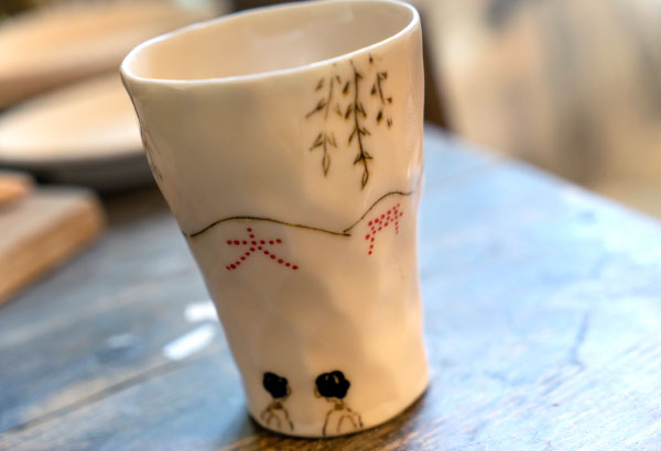 普段はそばちょこを作るのが好きで、物語が感じられるのが良いなと思い今回のビアタンブラーを制作しました。ぐるっと楽しめる器になったかなと思いますので、ぐるっと絵を見て頂けたらと思います。