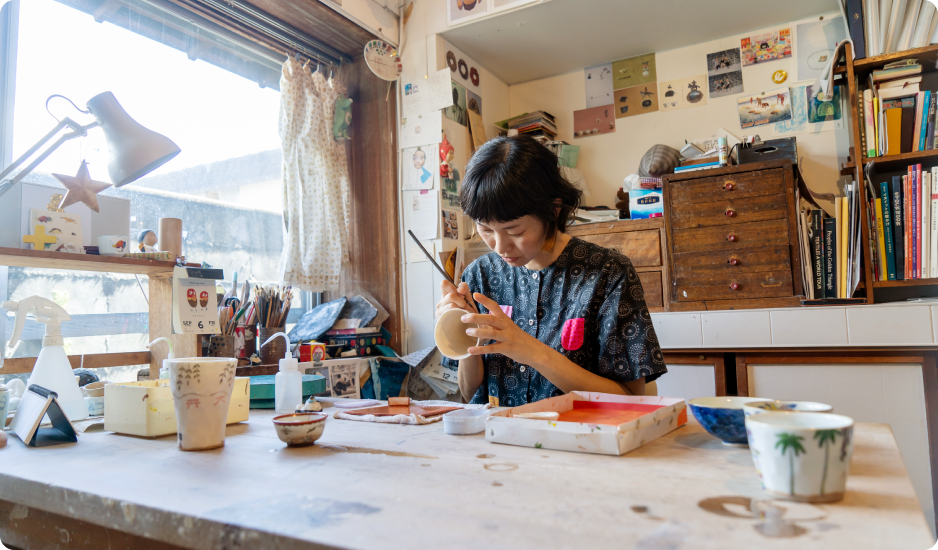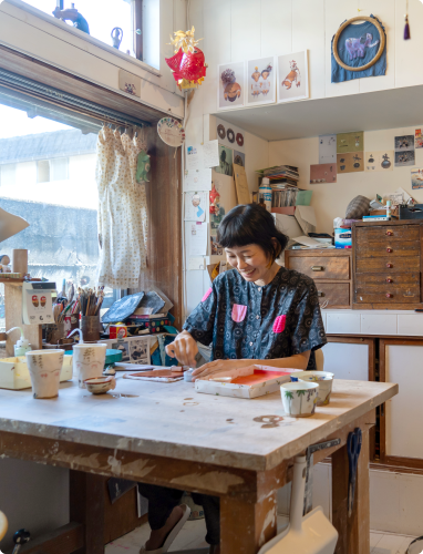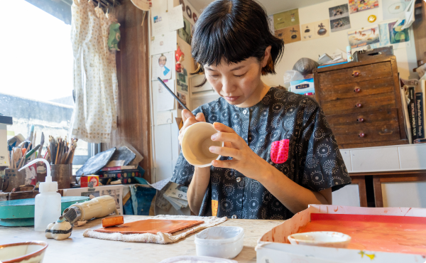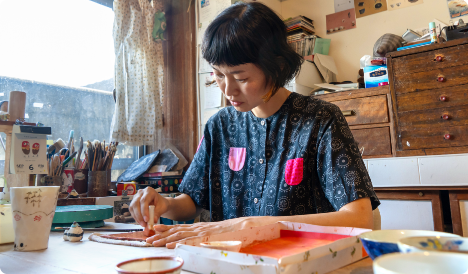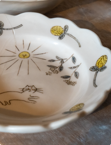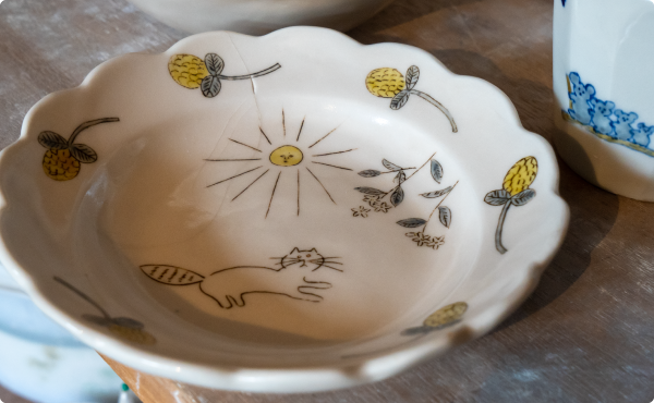 磁器だけどやわらかい・あったかいイメージにしたいなと考え、そういう感じにできたと思います。制作期間がちょうど夏だったので、私にとっても夏の思い出になりました。
