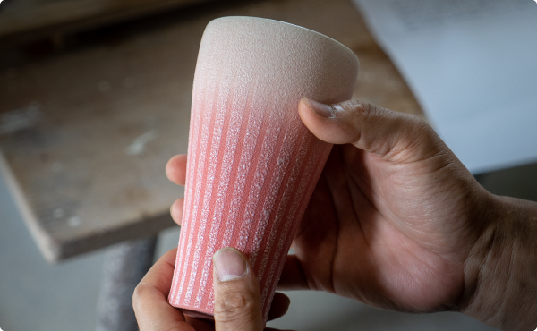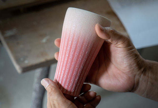 他の方のビアタンブラーと一緒に並んでそれがお客様の目にどう見えるのか、自分が製作するにあたってのコンセプトや想いがどう伝わるのか楽しみです。