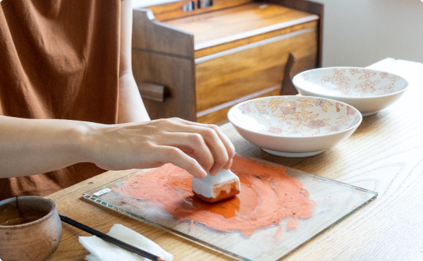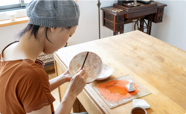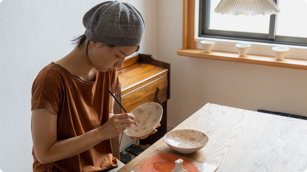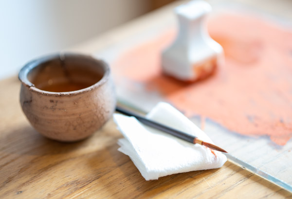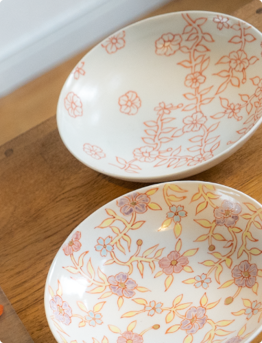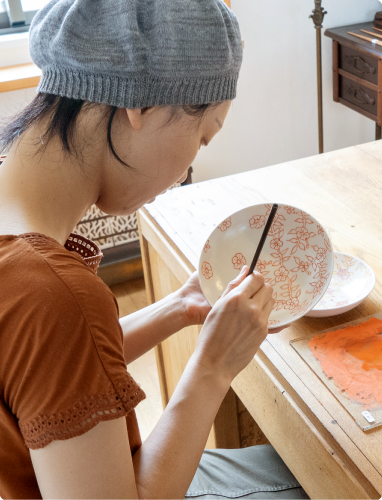 楽しい感じを出したかったので、いつもよりカラフルに仕上げました。中の釉薬を薄くかけることで、泡が綺麗に出るように考えて釉薬をつけました。